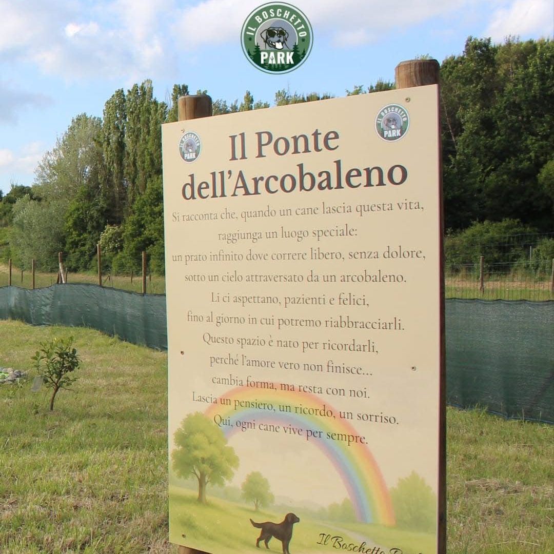 Questo luogo nasce per ricordare il legame profondo tra persone e animali: ogni colore racconta una storia — il verde della vita, il giallo della gioia, l’azzurro della libertà. Quando il sole attraversa il ponte, sembra sussurrare: “non ti ho lasciato, sono solo dall’altra parte.”
